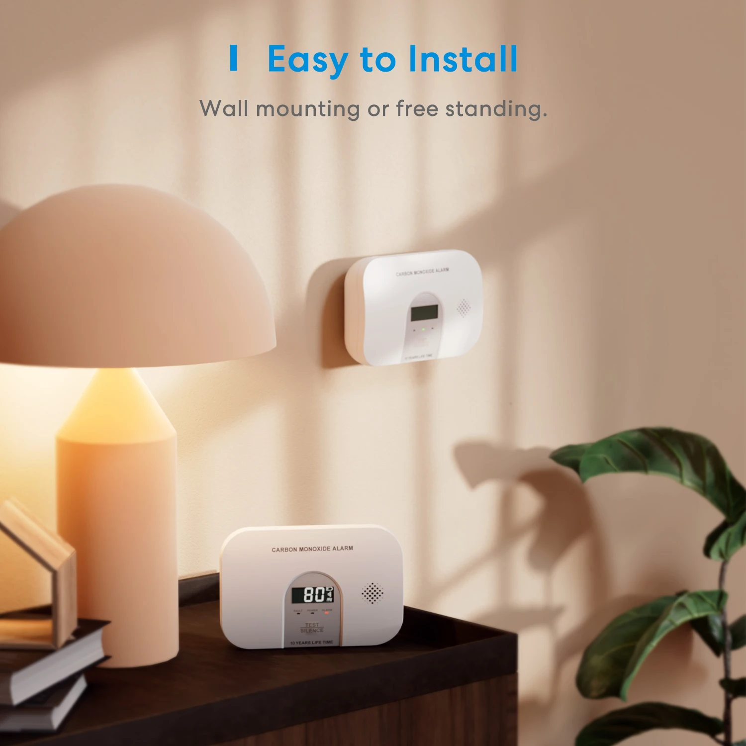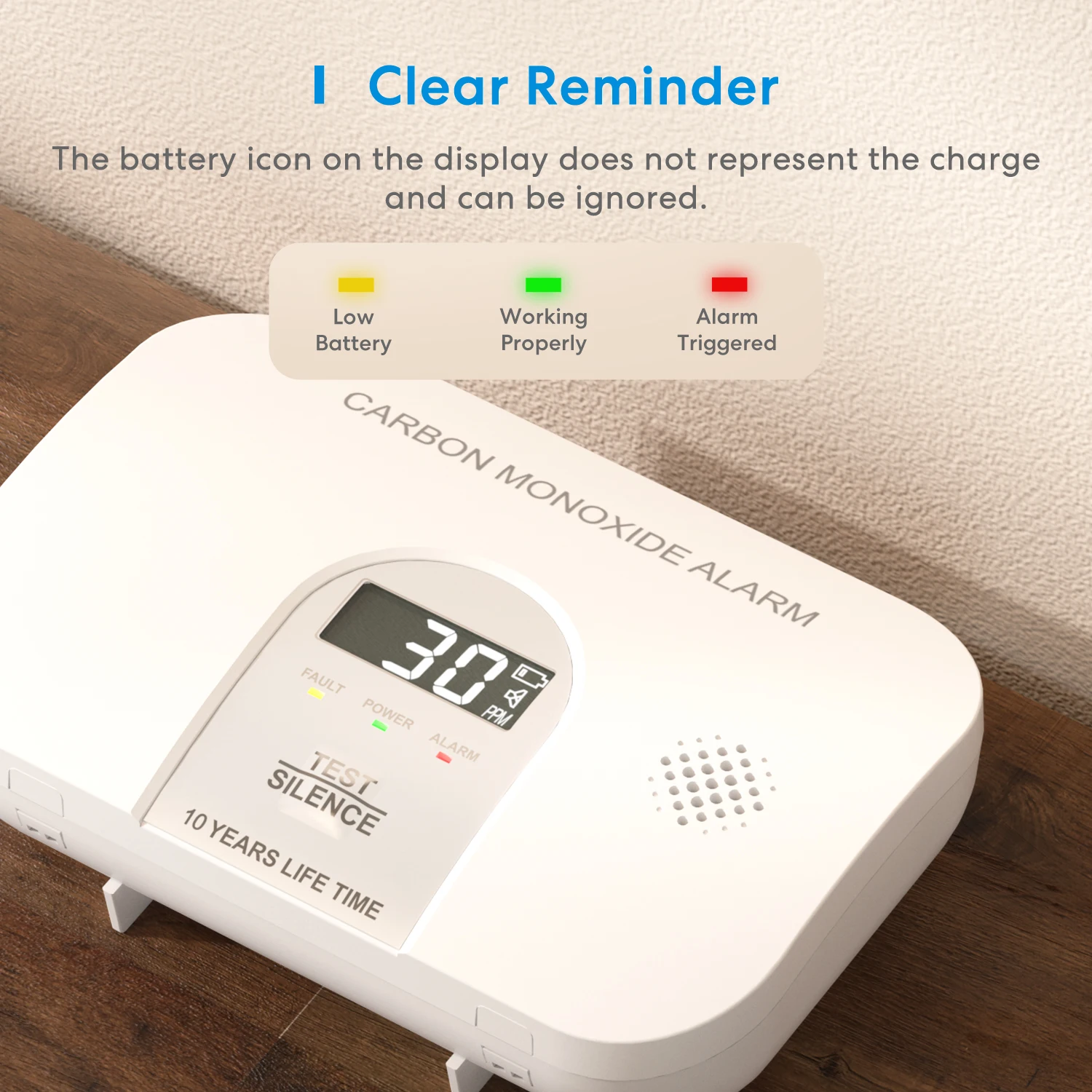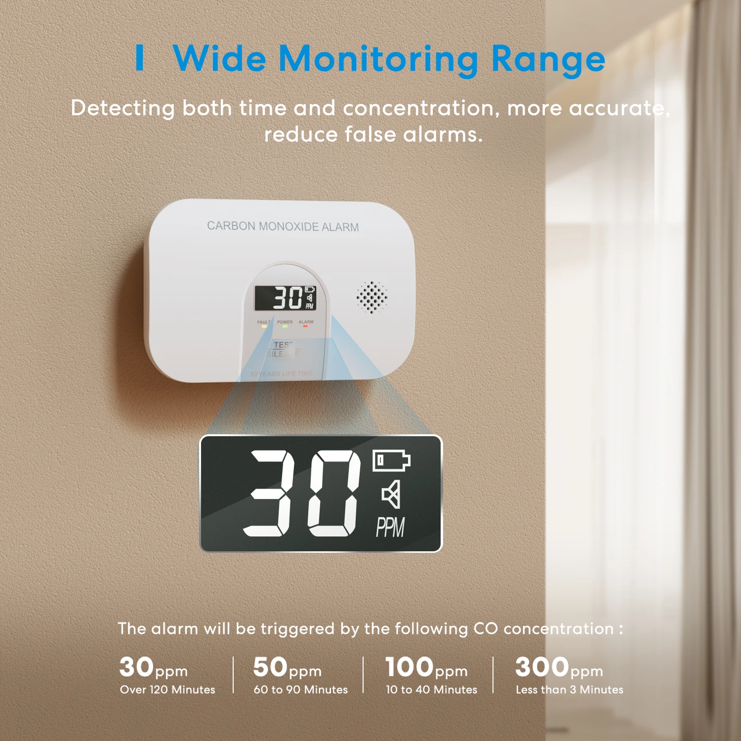 Detector de Monóxido de Carbono Meross com Sirene de 85dB, Sensor de Som, Alarme de Monóxido de Carbono, Sensor de Gás de Fumaça de Alarme de Envenenamento com Indicador LCD