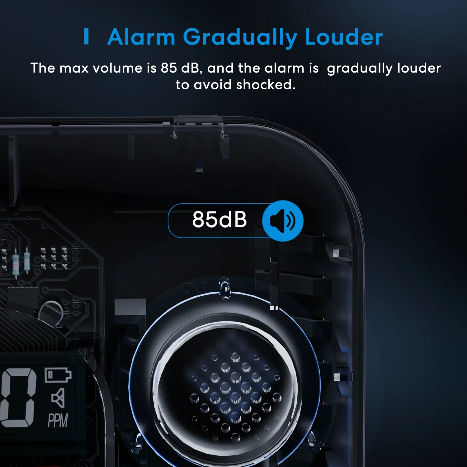 [Sensor Sensível] Sensor avançado e sensível. Quando a concentração de CO atinge 300PPM, o tempo de detecção é inferior a 3 minutos.