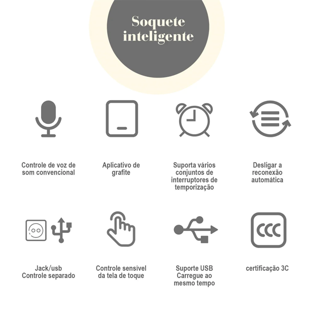 Controle de voz: Quando o tomada inteligente (smart plug) está embarelhado com um sistema doméstico inteligente que suporte voz, você pode usar a voz para ligar/desligar o aparelho elétrico conectado à tomada inteligente (smart plug)